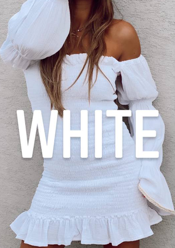 שמלה מיני בצבע לבן עם שרוולים נפוחים