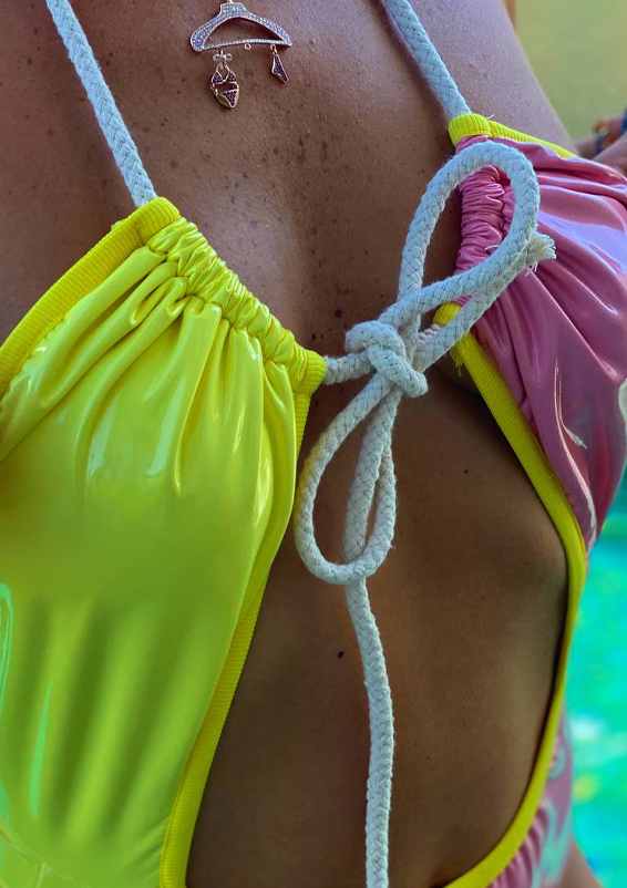 בגד ים שלם- ורוד צהוב