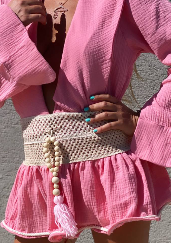 חולצת אובר סייז טטרה בצבע ורוד, בעלת צווארון מחויט